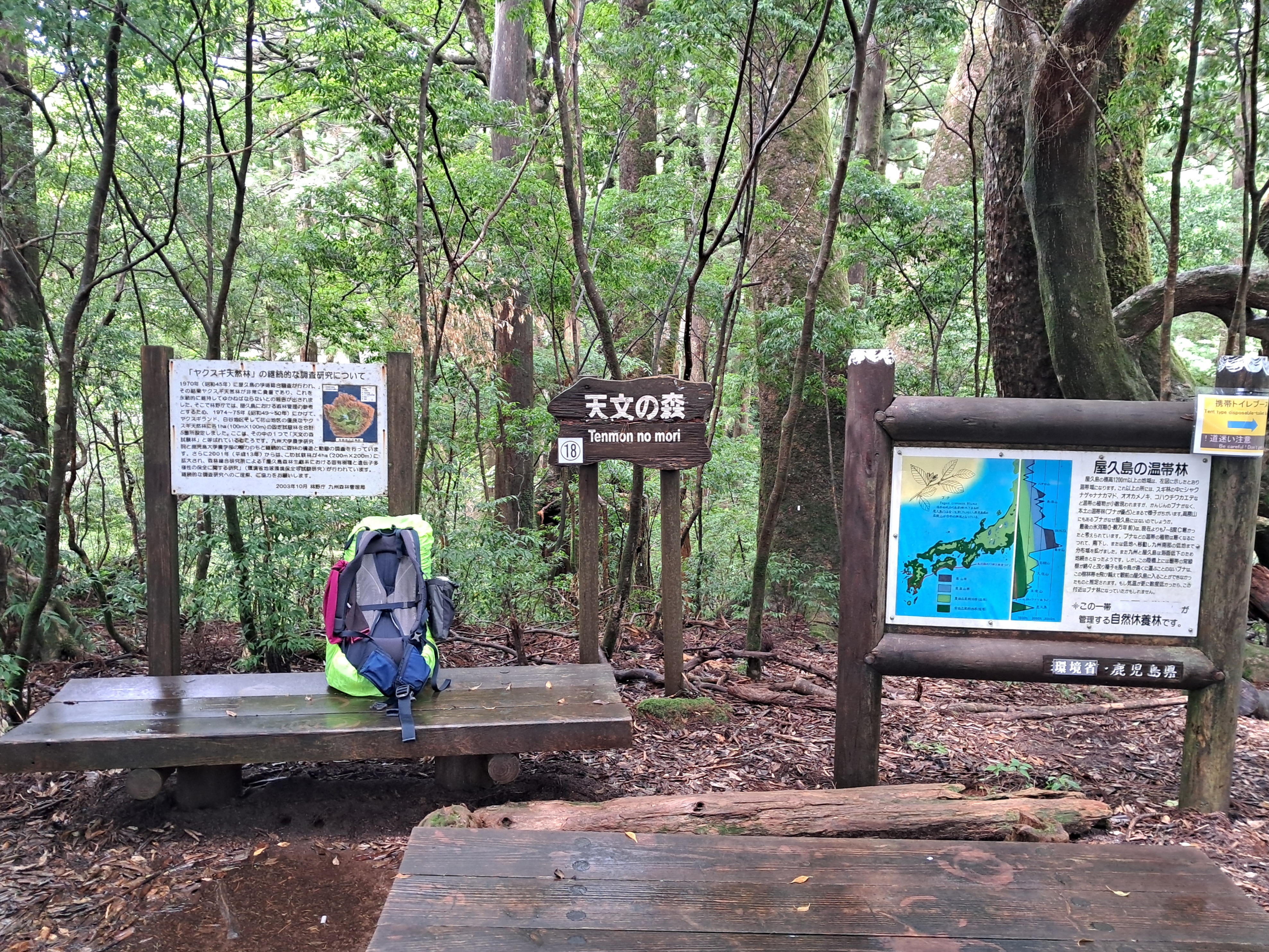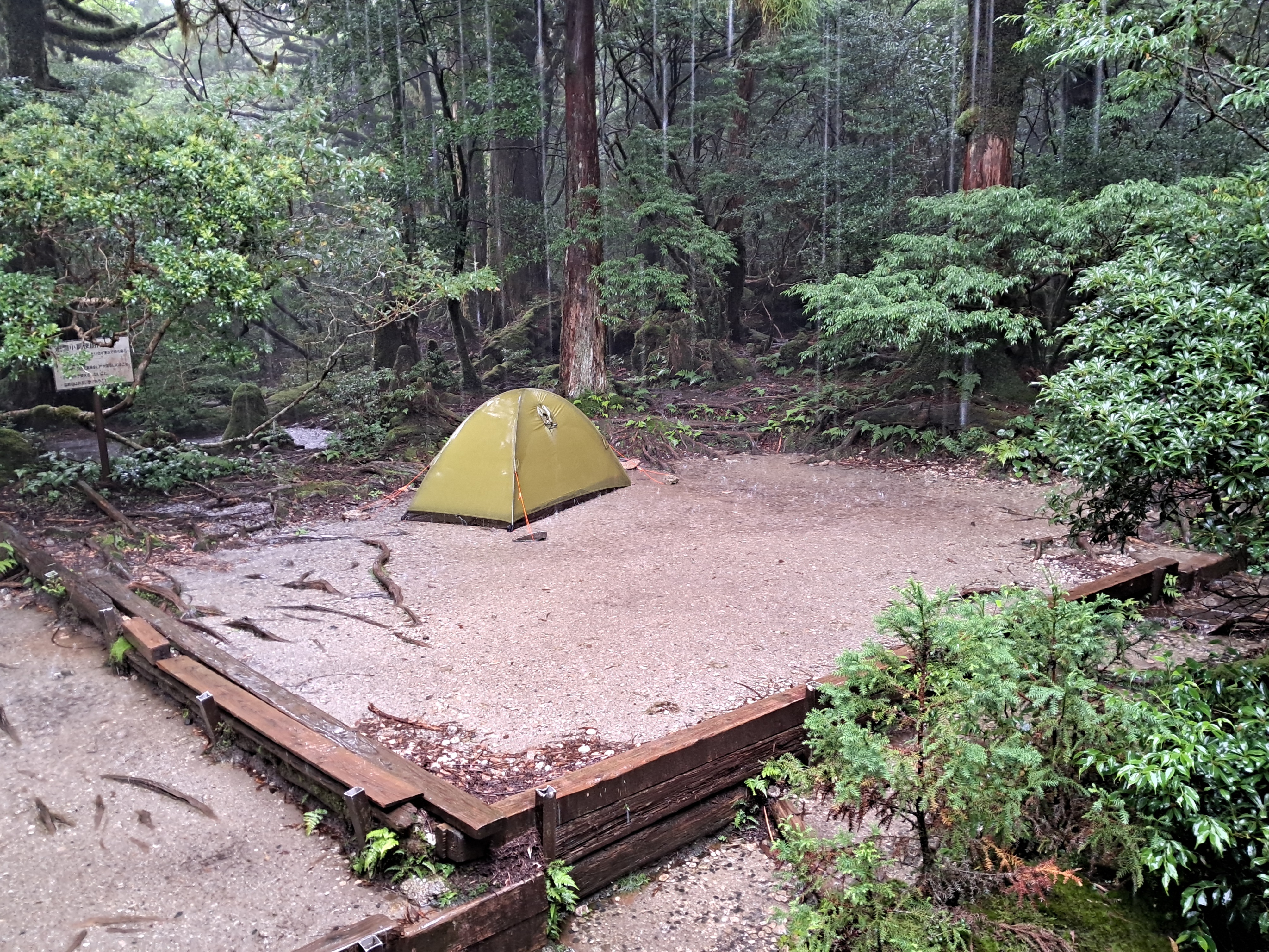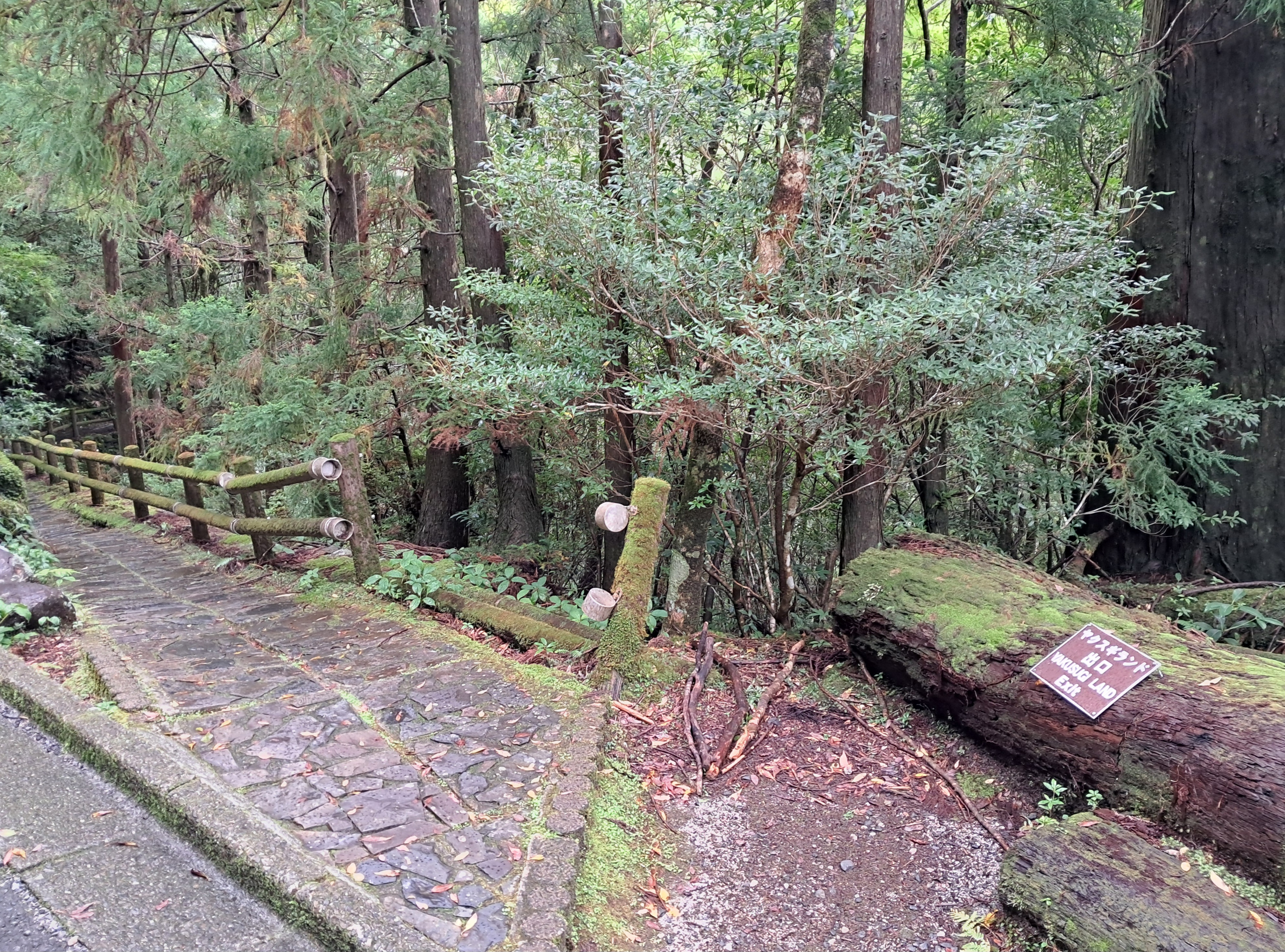 (비를 맞으며 자연휴양림 ヤクスギランド 야쿠스기란도로 내려서다)