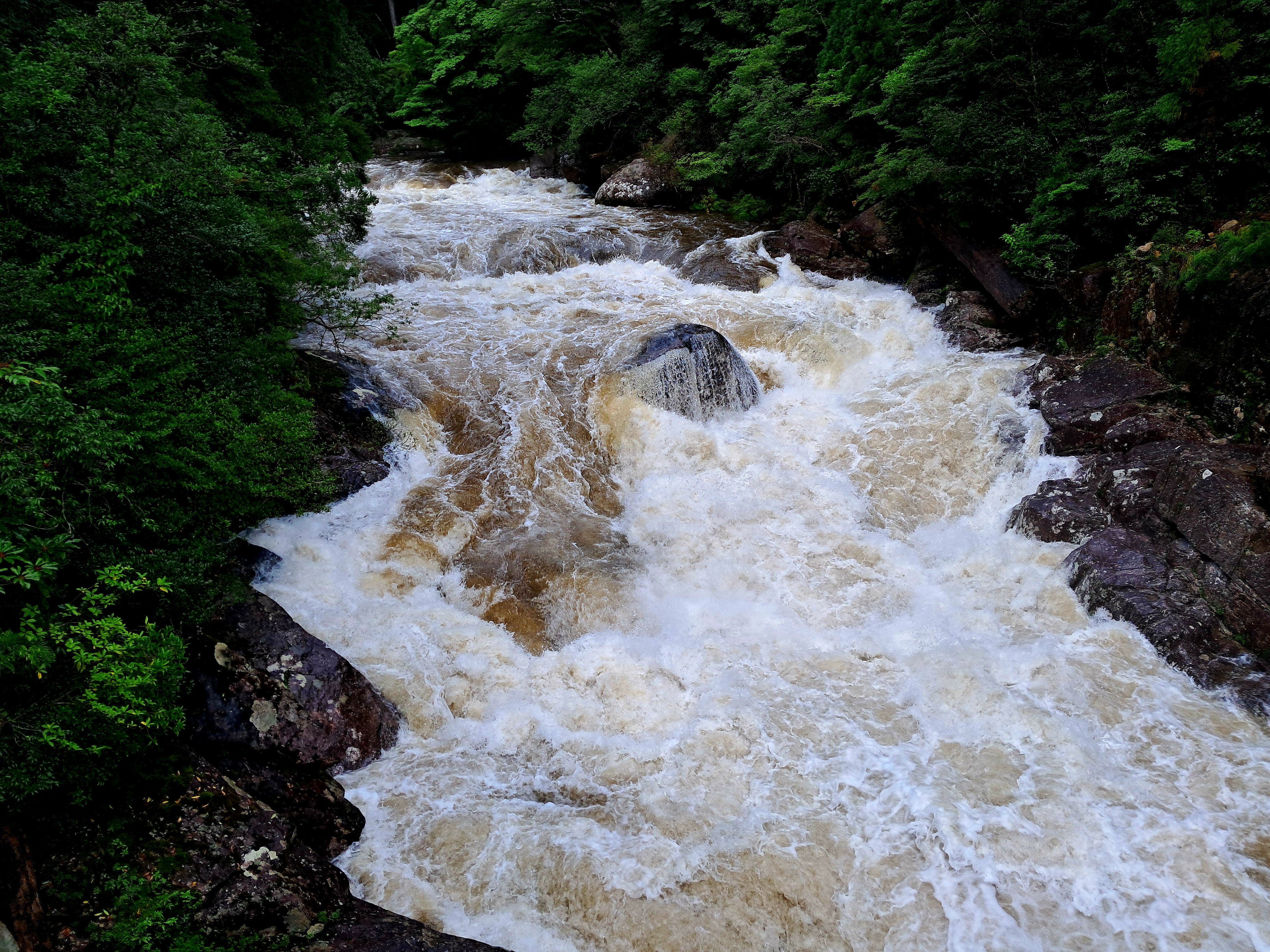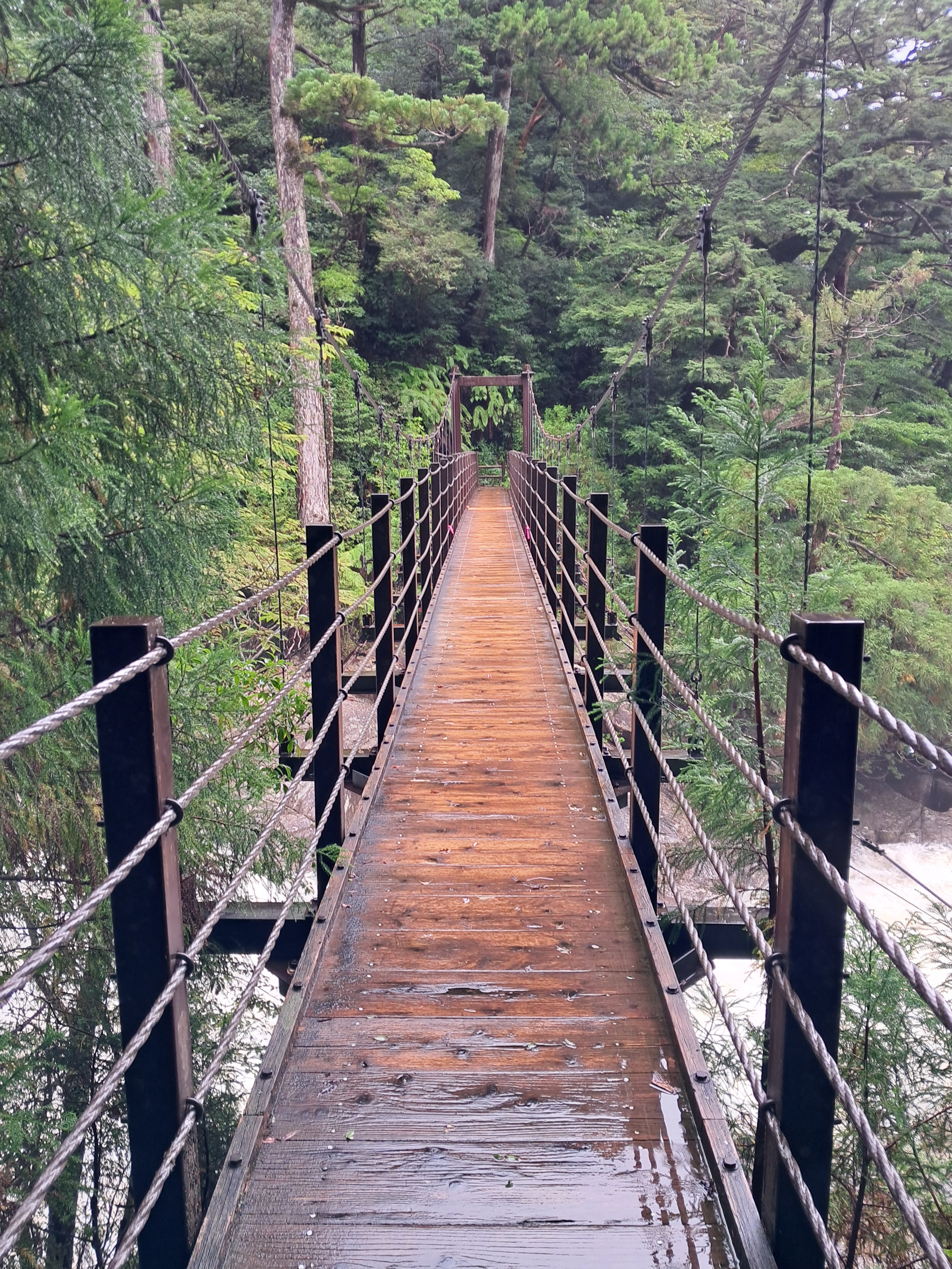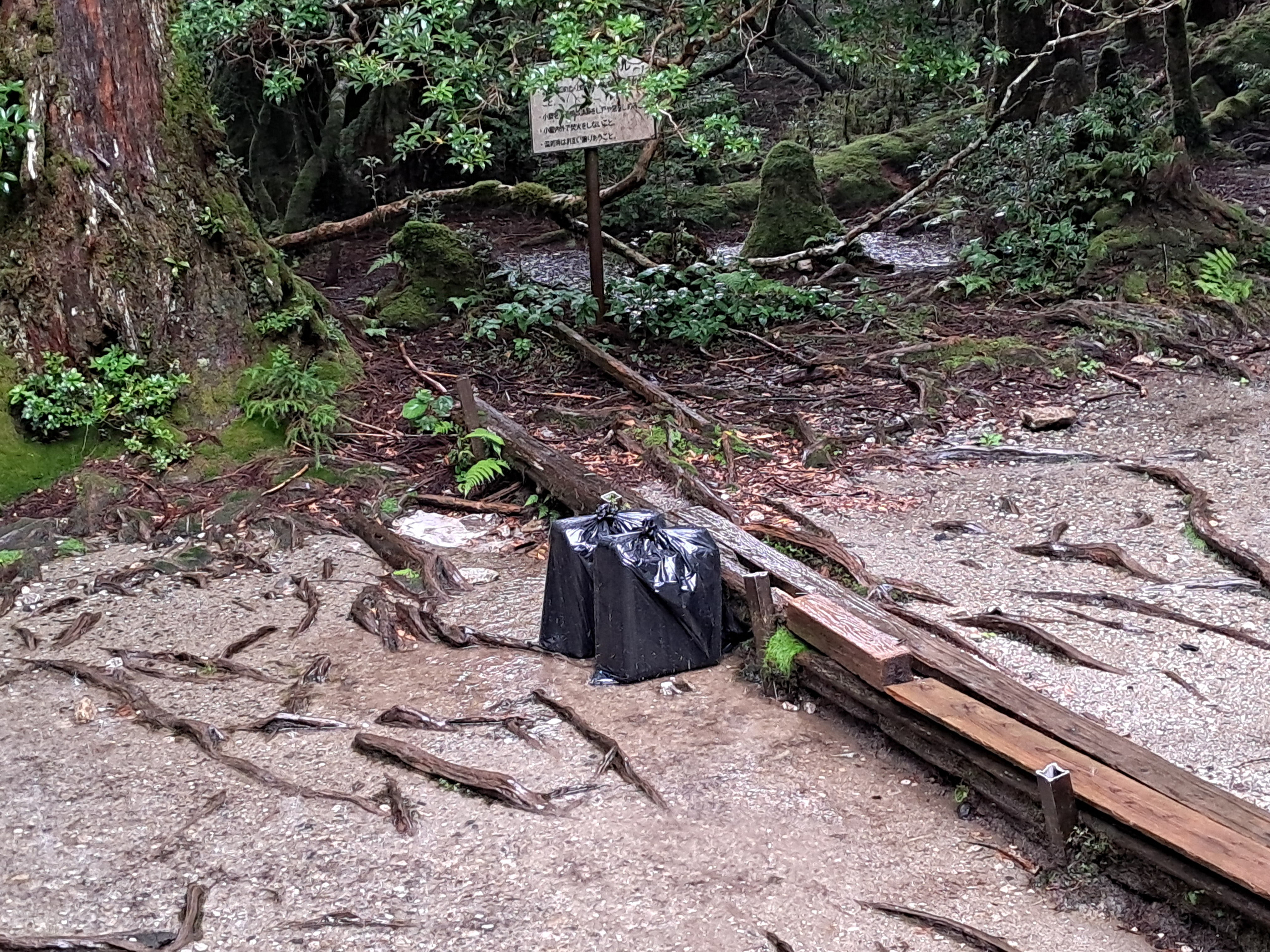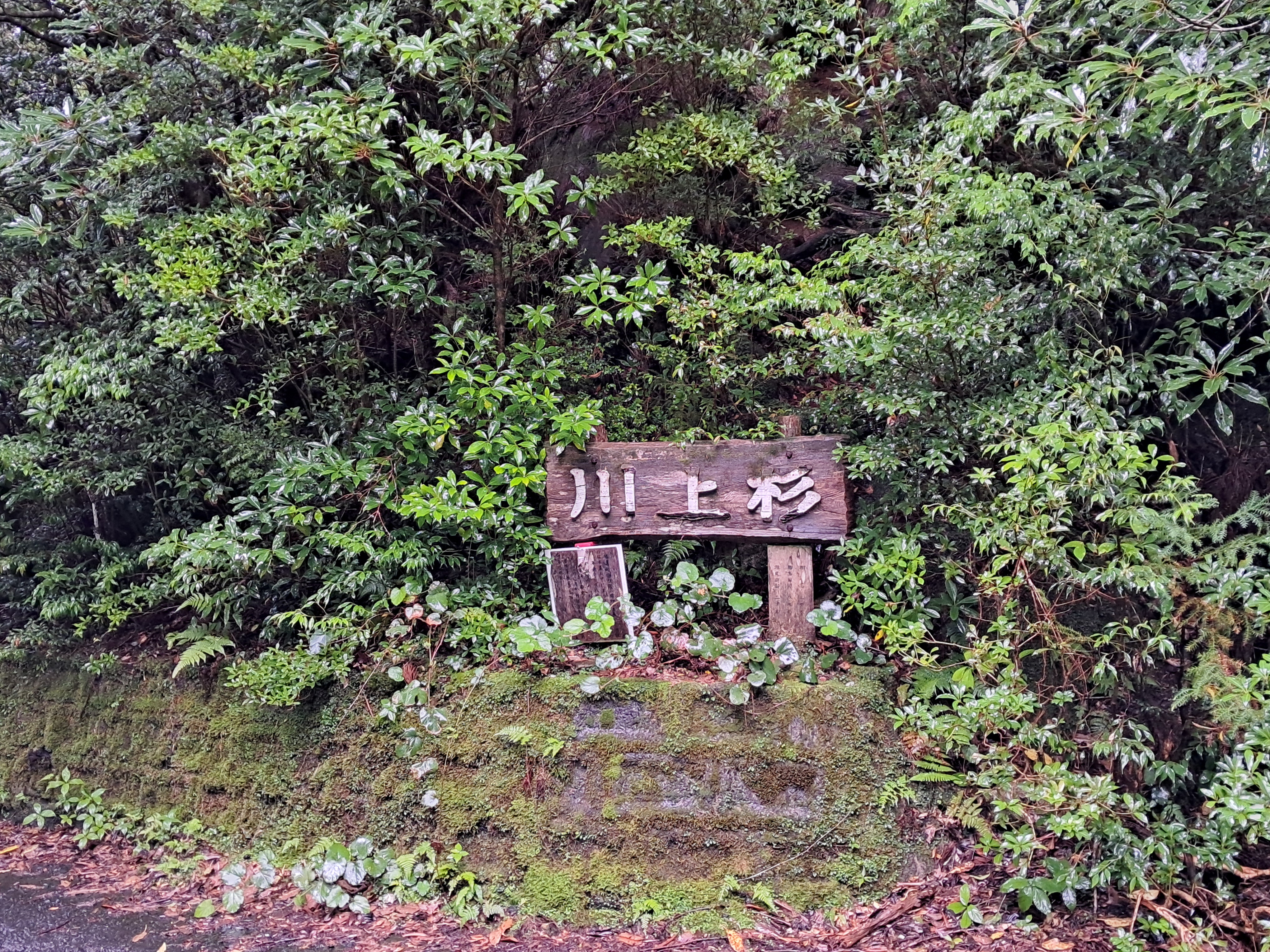 (비를 맞으며 자연휴양림 ヤクスギランド 야쿠스기란도로 내려서다)